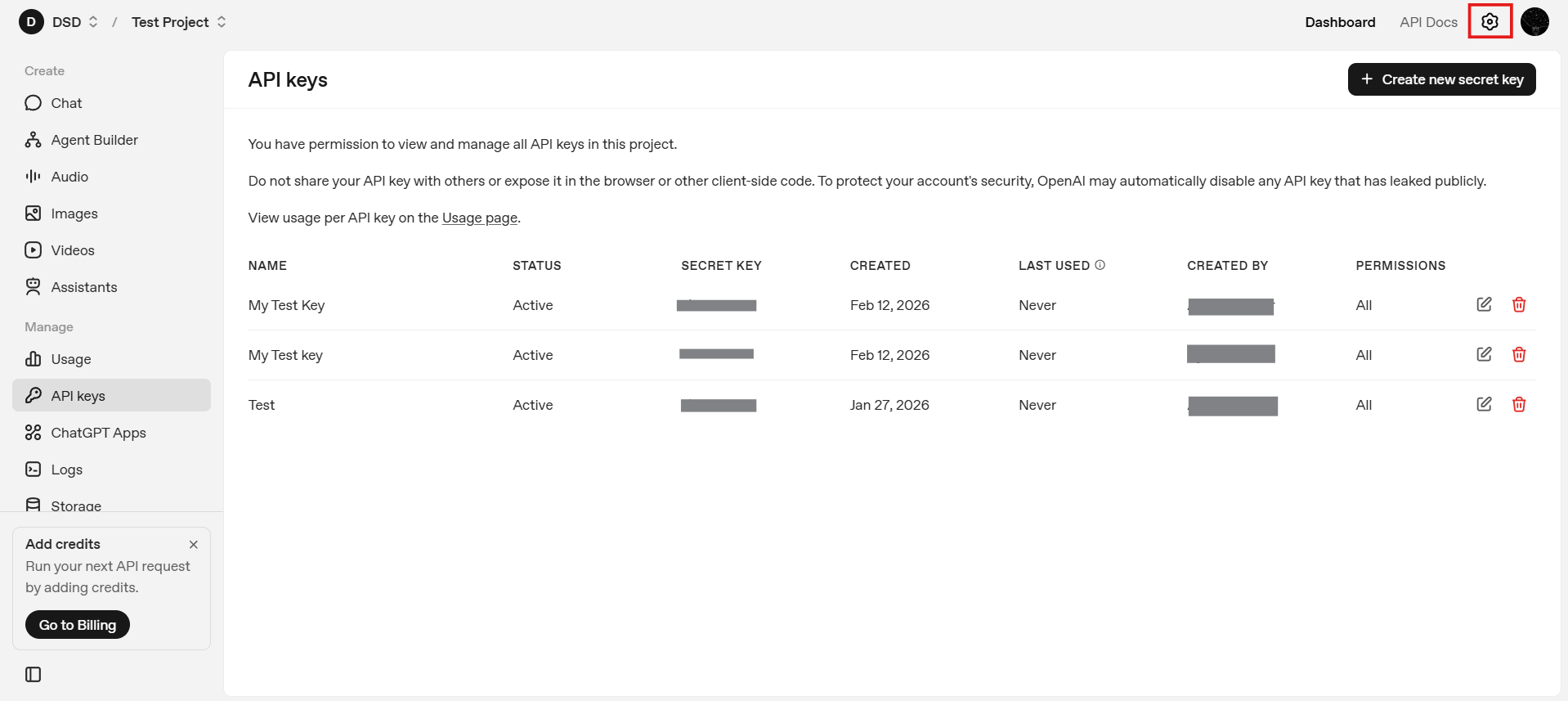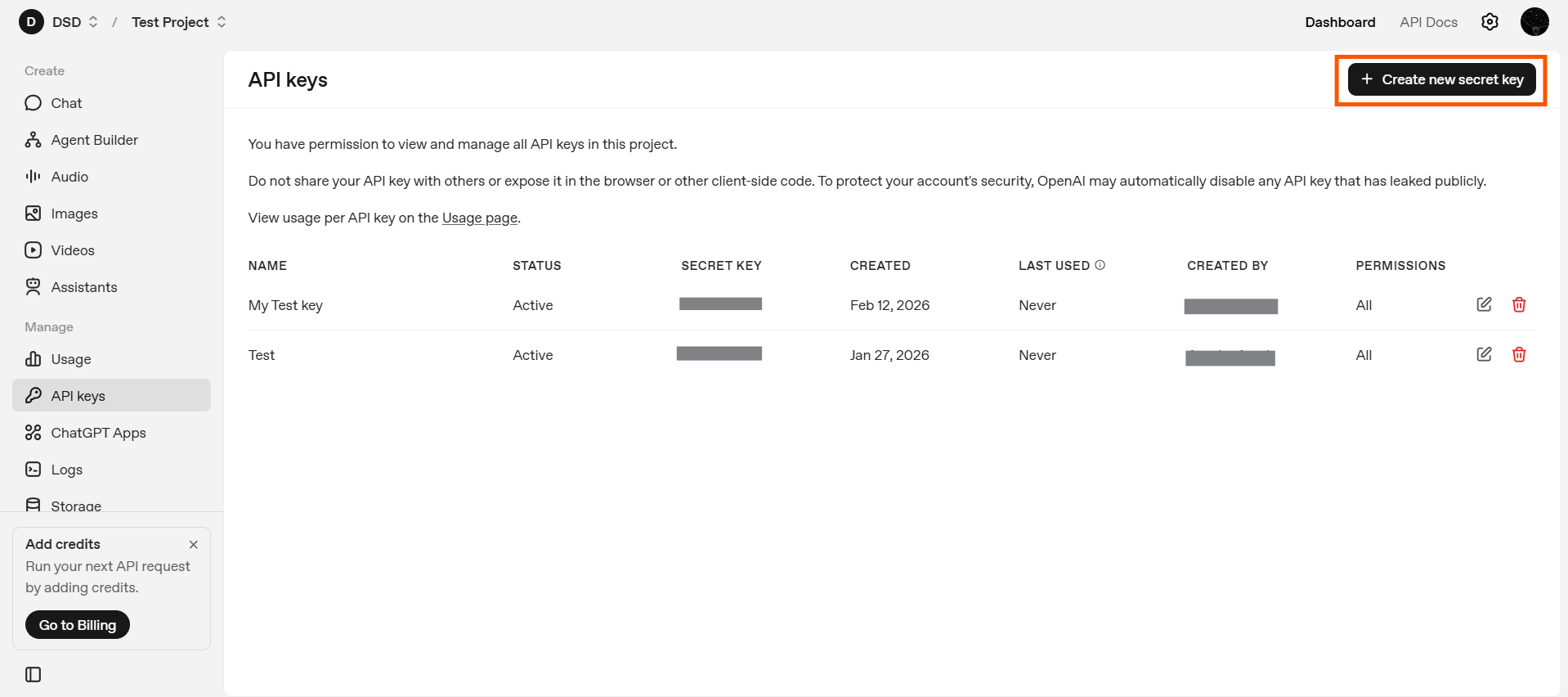 - Owned by You: These keys are tied directly to your user identity and are typically used for local development, testing, and experimentation. They are easier to manage for solo developers and personal projects where access control and infrastructure complexity are minimal.