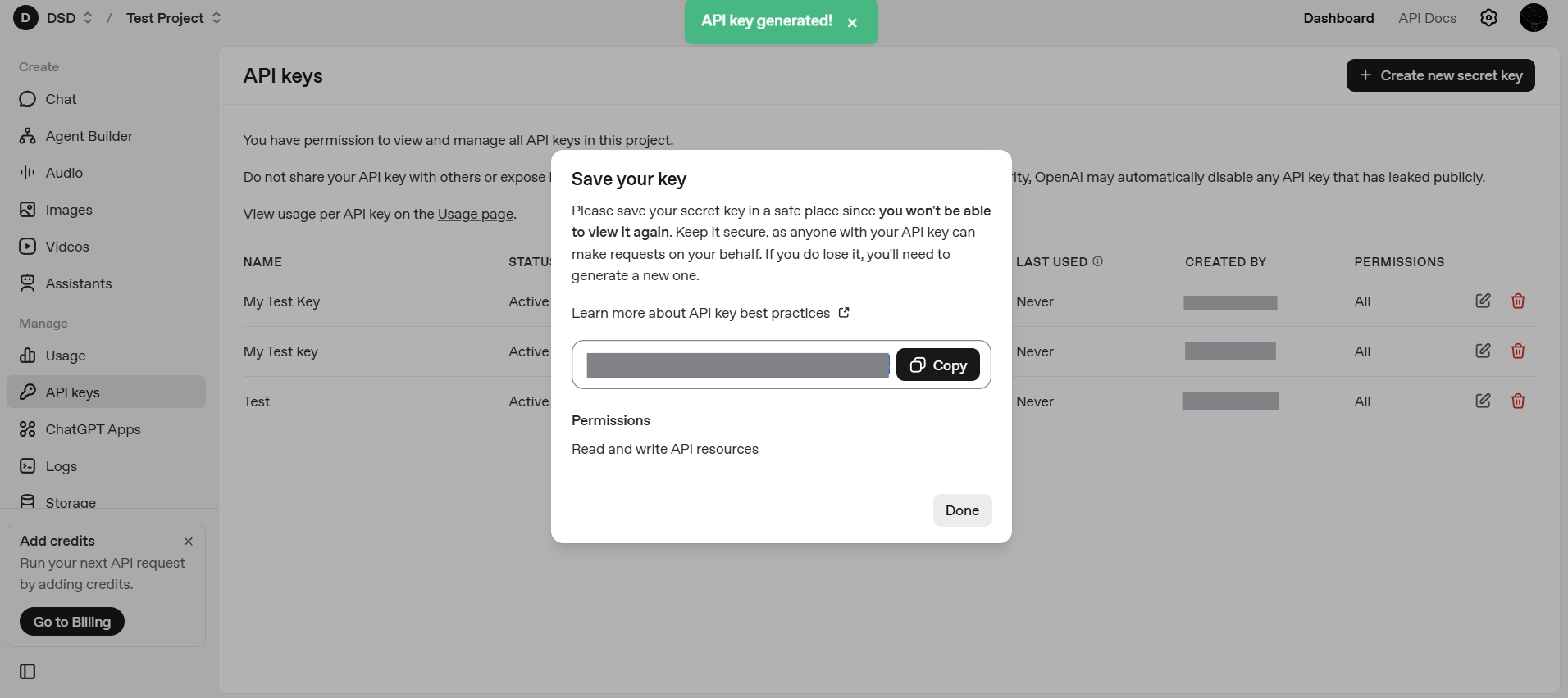 Generating an OpenAI API Key