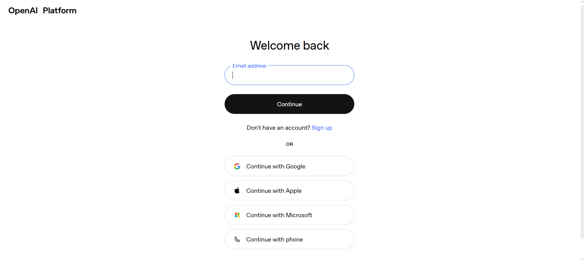 Sign in using your OpenAI account credentials. You can log in with an email/password combination or a supported single sign-on provider. If this is your first time accessing the platform, you may be asked to complete basic account setup before continuing.