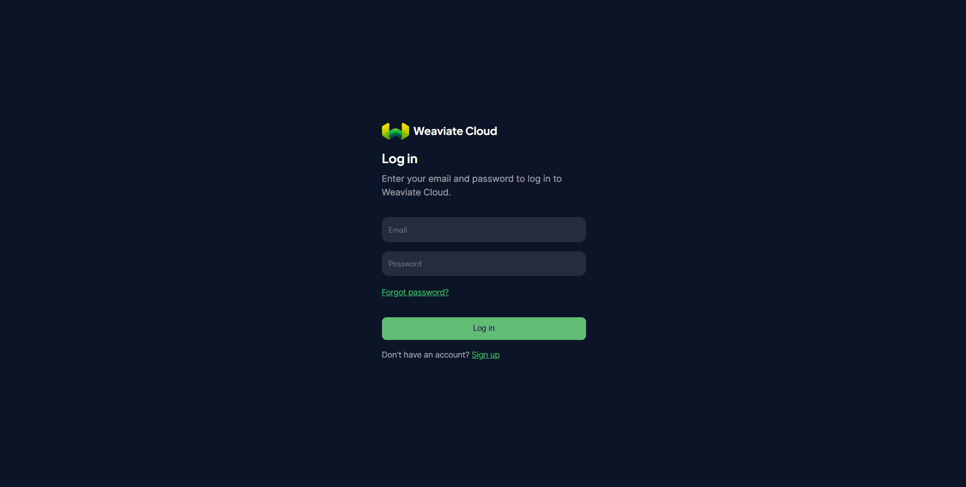 This console is the central interface for managing weaviate clusters, organizations, API keys, and access control. All cluster-related configuration and lifecycle management happens here. You will be prompted to Sign in or Sign up.